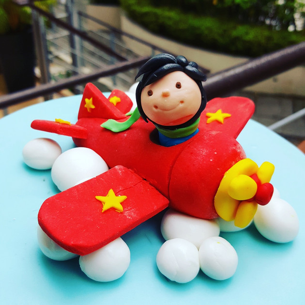 I made a 3D plane in red fondant with N in the pilot’s seat.